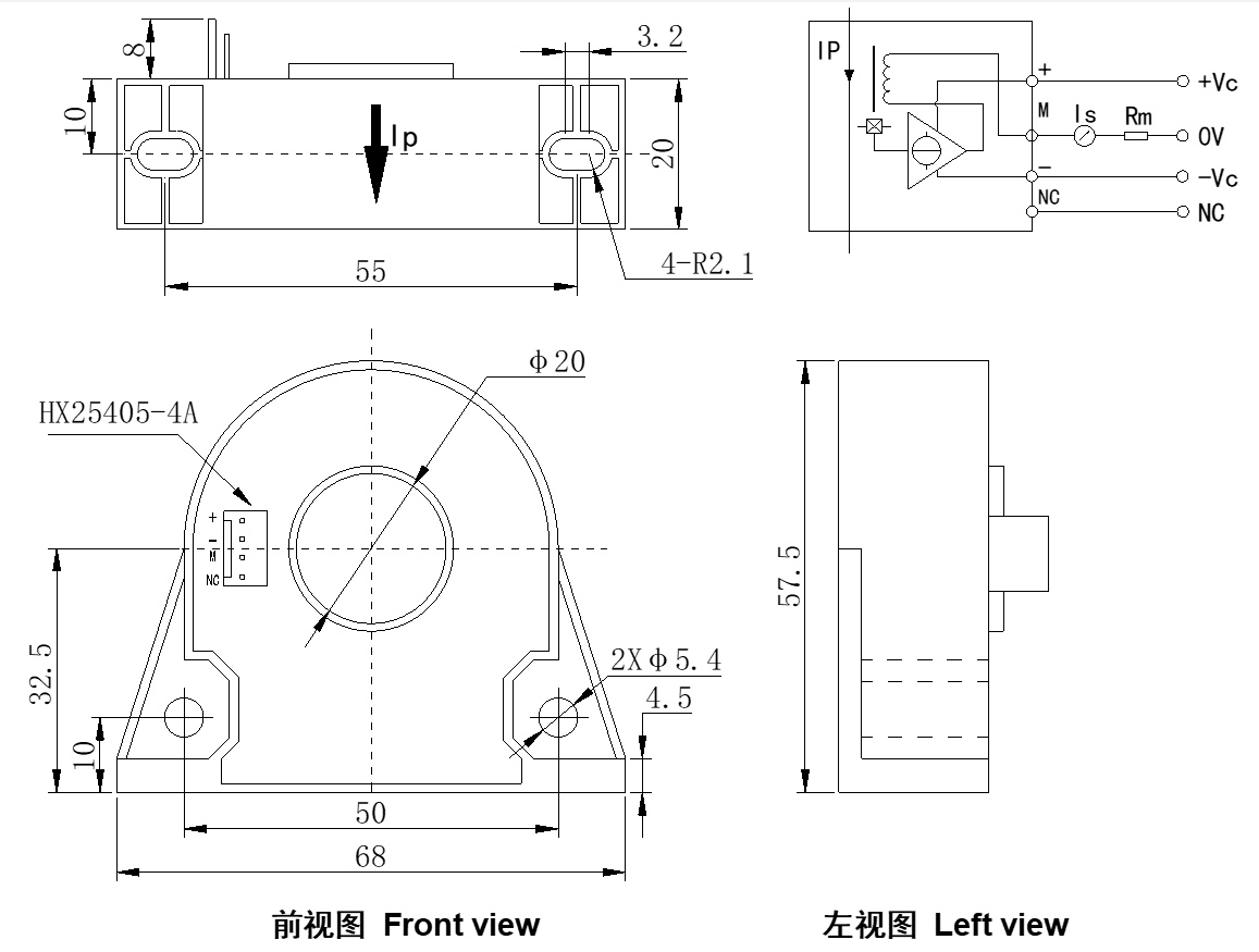 性能參數(shù):工作原理 | 工作電壓V | 額定電流IP/A | 輸出 | 精度% | 響應(yīng)時(shí)間 | 抗電強(qiáng)度kV | 工作溫度℃ | 備注 |