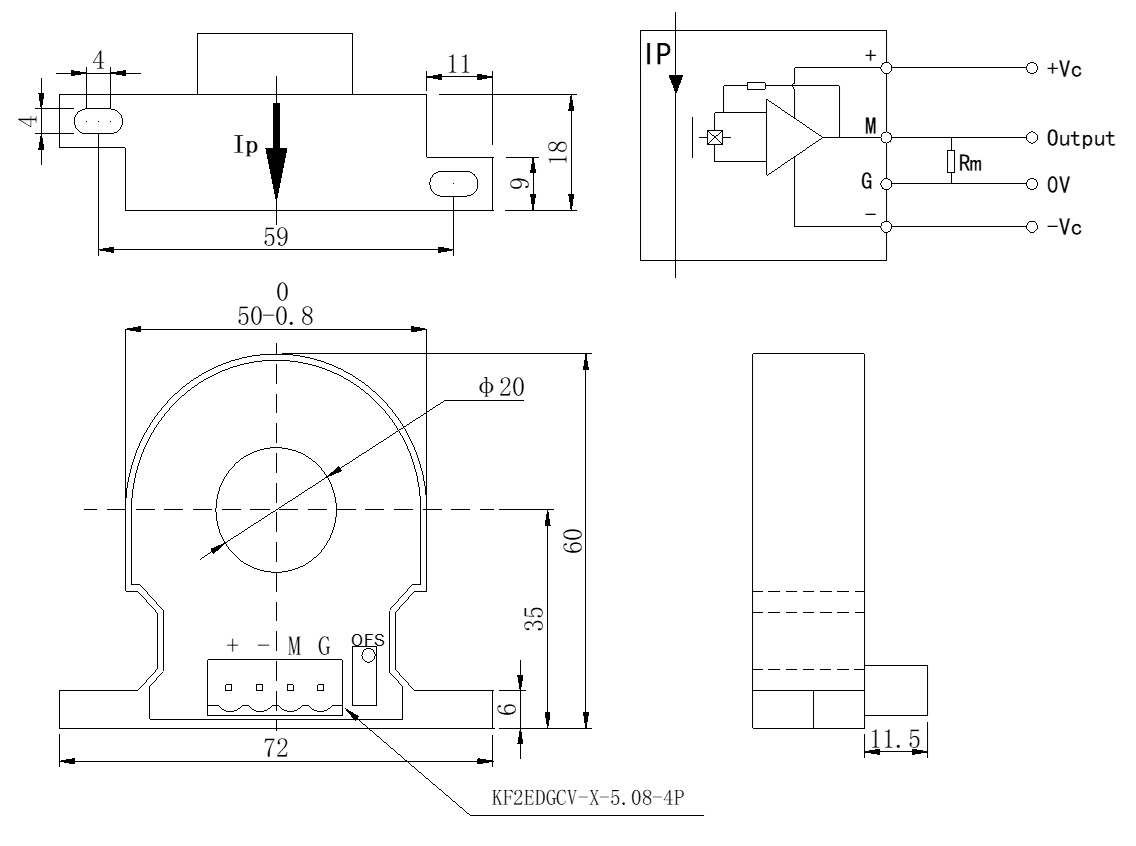 工作原理 | 工作電壓V | 額定電流IP/A | 輸出 | 精度% | 響應(yīng)時(shí)間 | 抗電強(qiáng)度kV | 工作溫度℃ | 備注 |