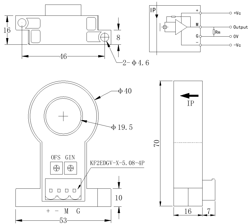 工作原理 | 工作電壓V | 額定電流IP/A | 輸出 | 精度% | 響應(yīng)時(shí)間 | 抗電強(qiáng)度kV | 工作溫度℃ | 備注 |